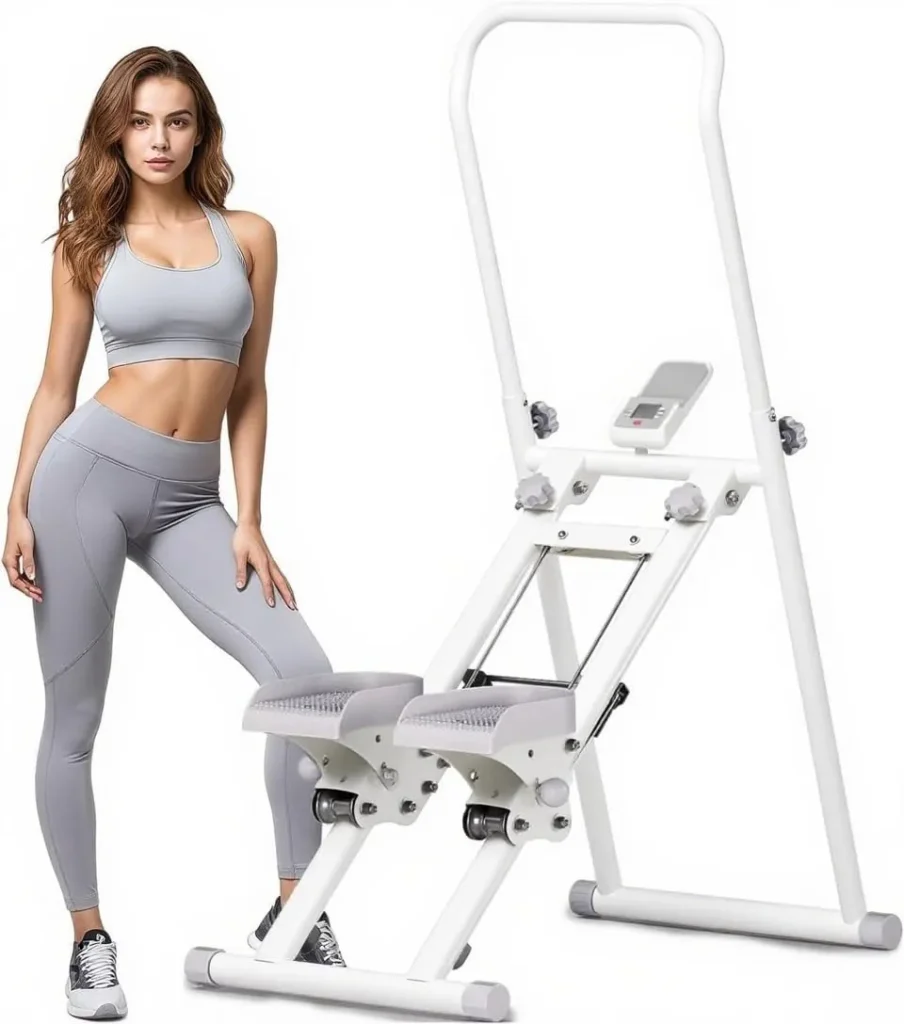 The Stair Climber is a powerful fitness machine that helps you burn fat, tone your legs, your backside, and tummy, and get fit right in your house or office! It’s like climbing stairs outside, but better and easier!